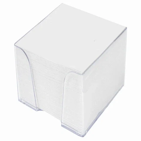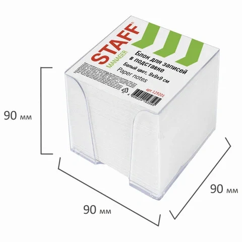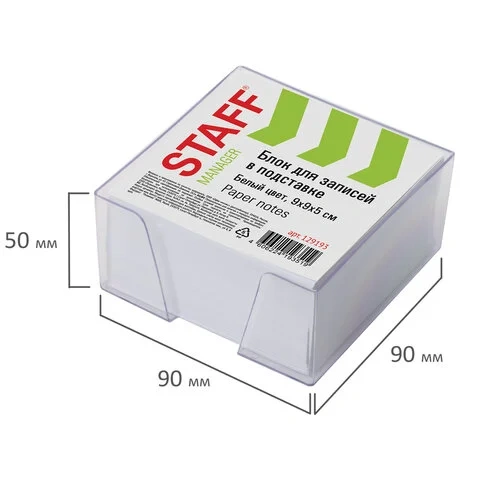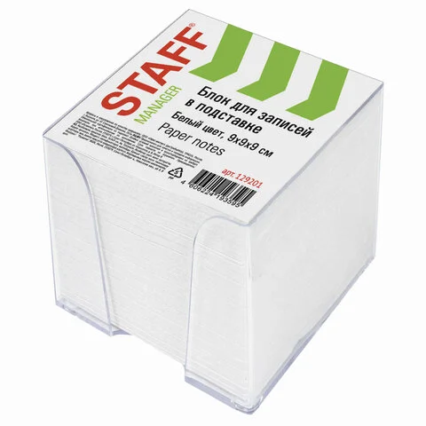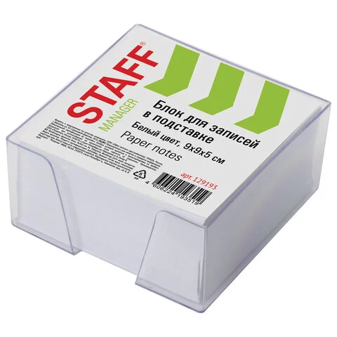 Блок для записей STAFF в подставке прозрачной, куб 9х9х5 см, белый, белизна 70-80%, 129194