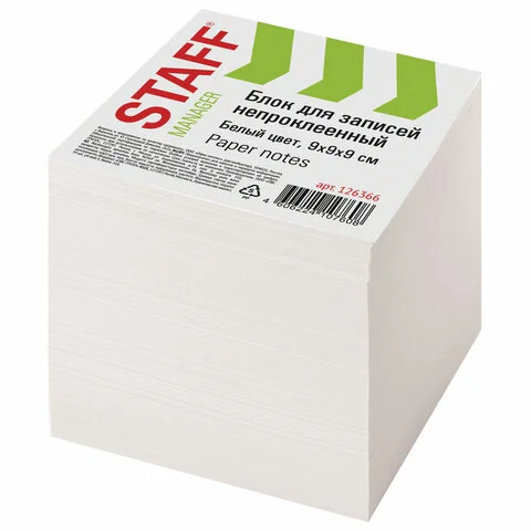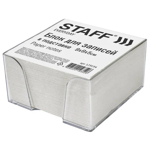 Блок для записей STAFF проклеенный, куб 9х9х5 см, белый, белизна 90-92%, 129196