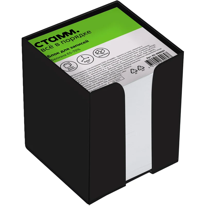 Блок для записей СТАММ 'Basic' 8*8*8см, пластиковый бокс, белый