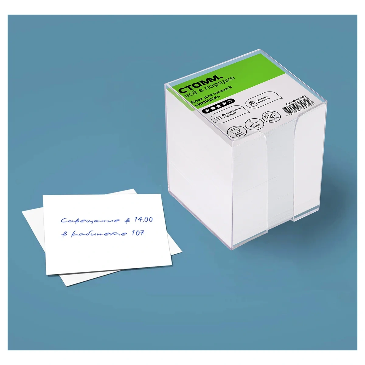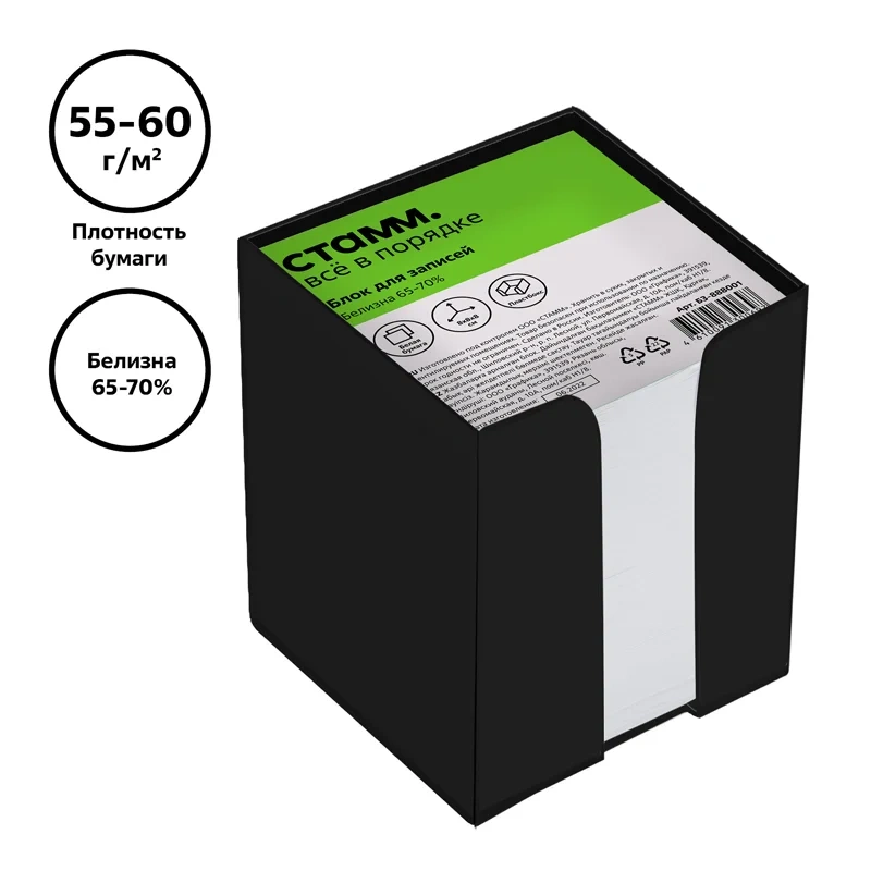 Блок для записей СТАММ 'Стандарт', 9*9*9см, пластиковый бокс, белый
