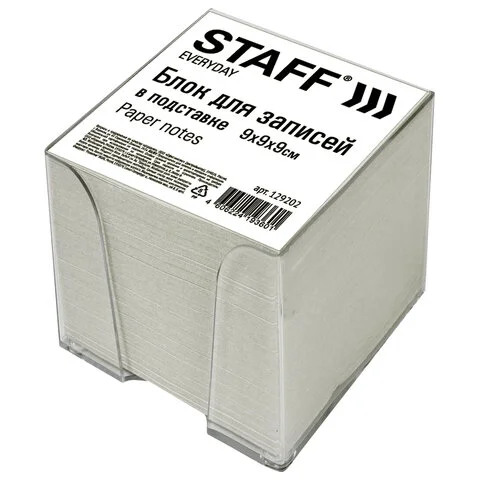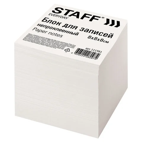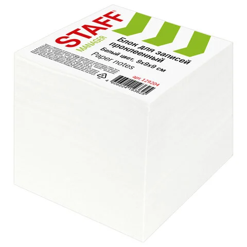 Блок для записей STAFF проклеенный, куб 9х9х9 см, белый, белизна 90-92%, 129204