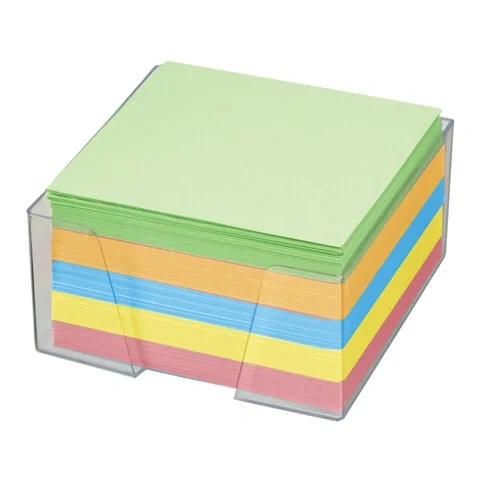 Блок для записей в подставке Erich Krause цветной в прозрачном боксе, 90х90х90мм