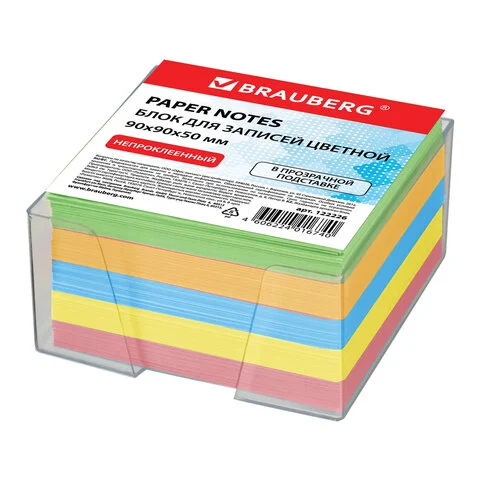 Блок для записей в подставке Brauberg цветной в прозрачном боксе, 90х90х50мм