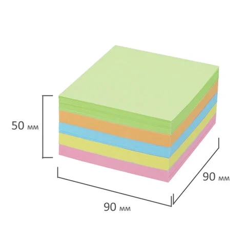 Блок для записей проклеенный Brauberg 9х9х9см, цветной