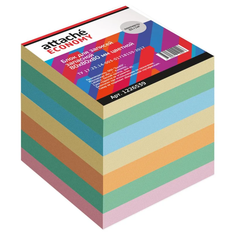 Блок для записей Attache Economy запасной 8х8х4, 5 цветов, 65 г