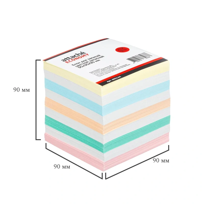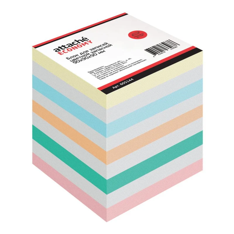 Блок для записей непроклеенный Attache Эконом 6 цветов, 90х90х90 мм, запасной