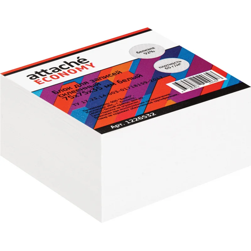 Блок для записей Attache Economy проклеенный 7,5х7,5х3,5, белый 65 г, 92