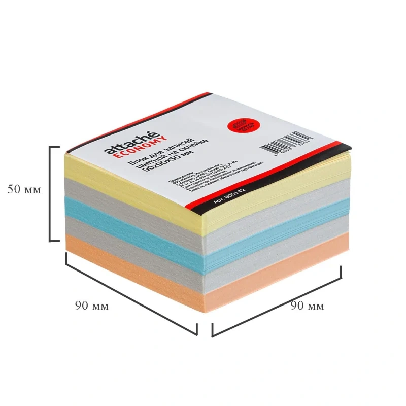 Блок для записей Attache Economy проклеенный 8х8х4, 5 цветов, 65 г