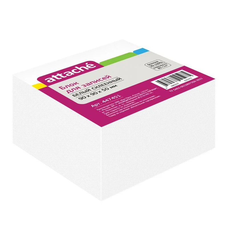 Блок для записей проклеенный Attache белый, 90х90мм, 447451