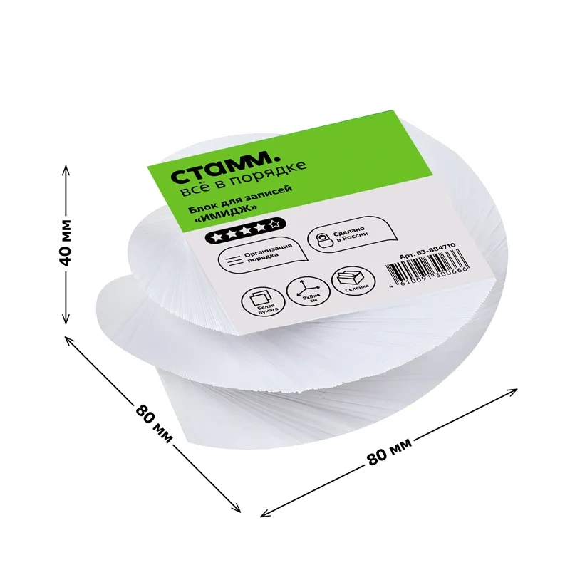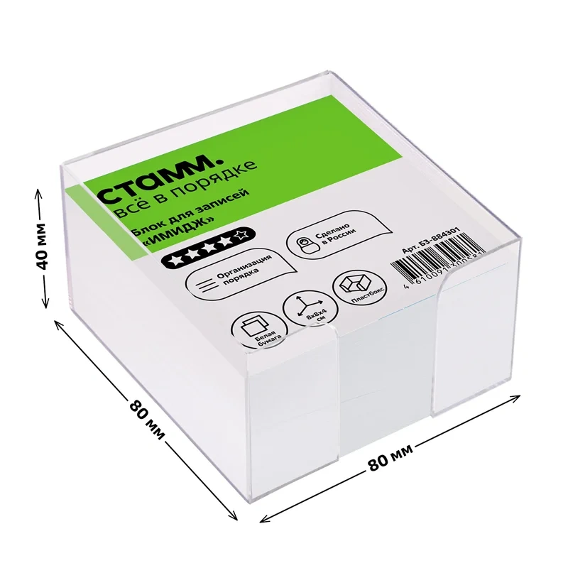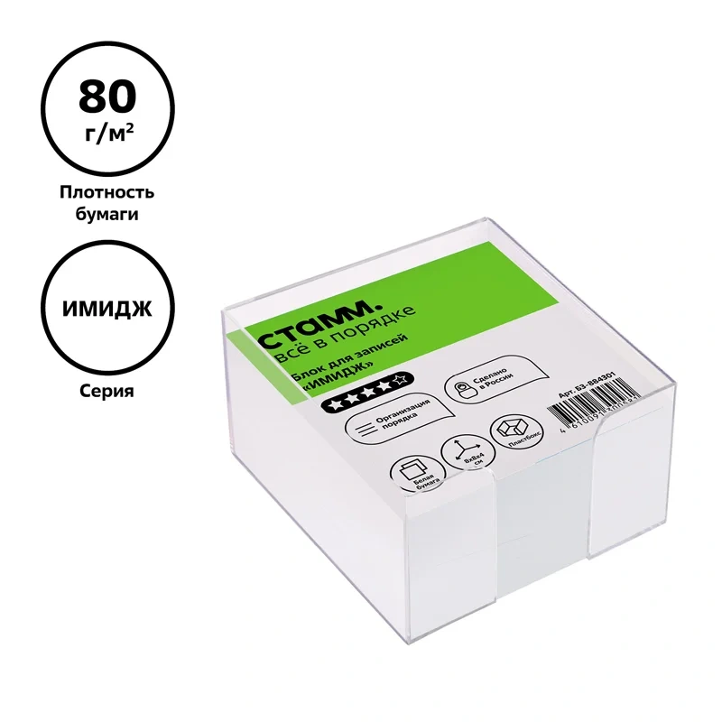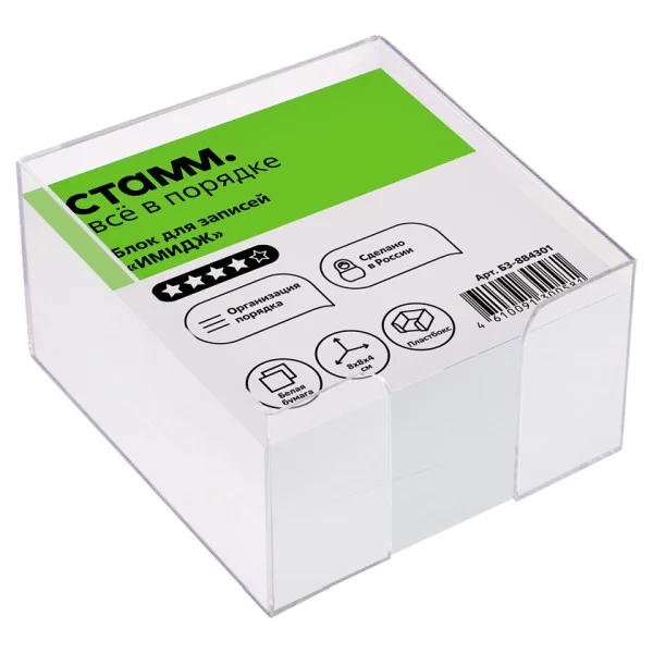 Блок для записей СТАММ 'Имидж', 8*8*4см, пластиковый бокс, белый