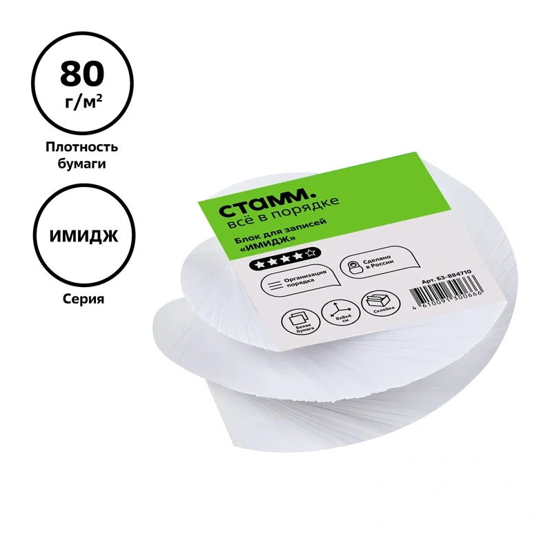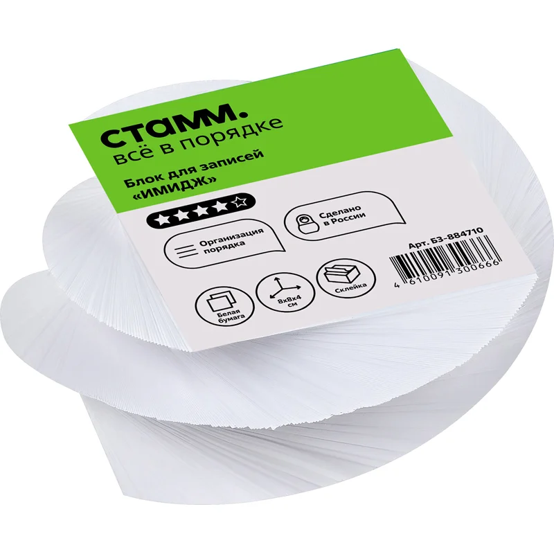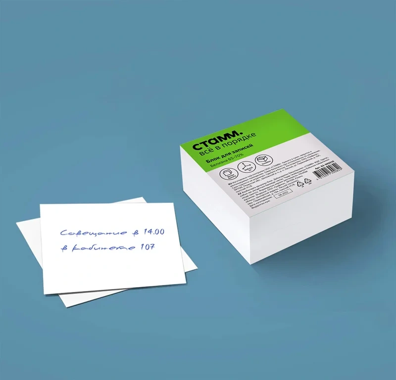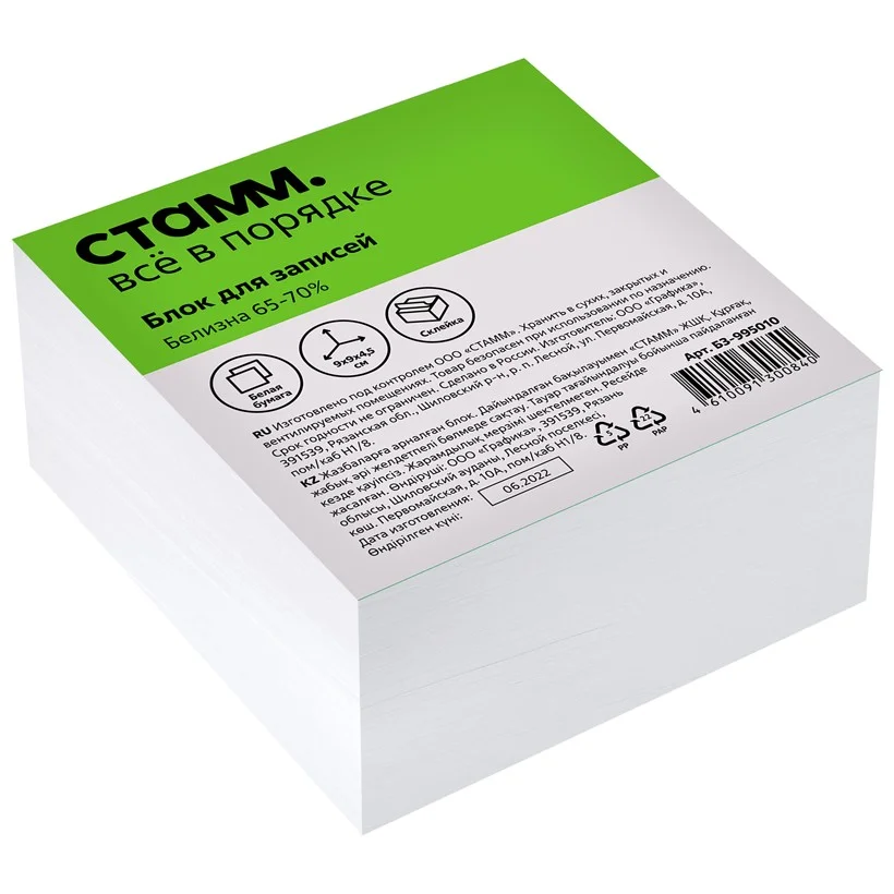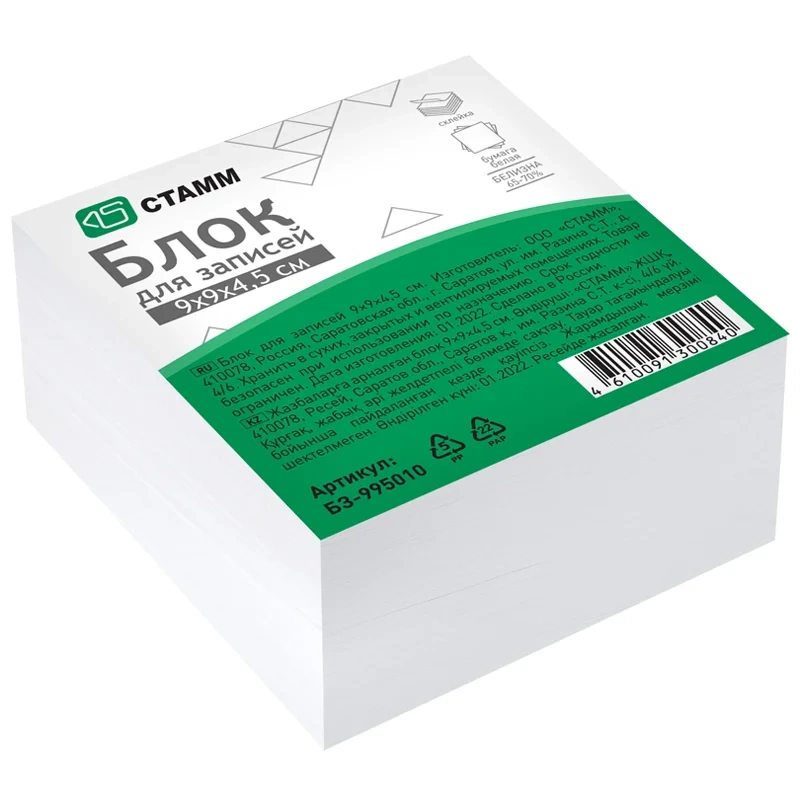 Блок для записей на склейке СТАММ, 9*9*4,5см, белый, белизна 65-70%