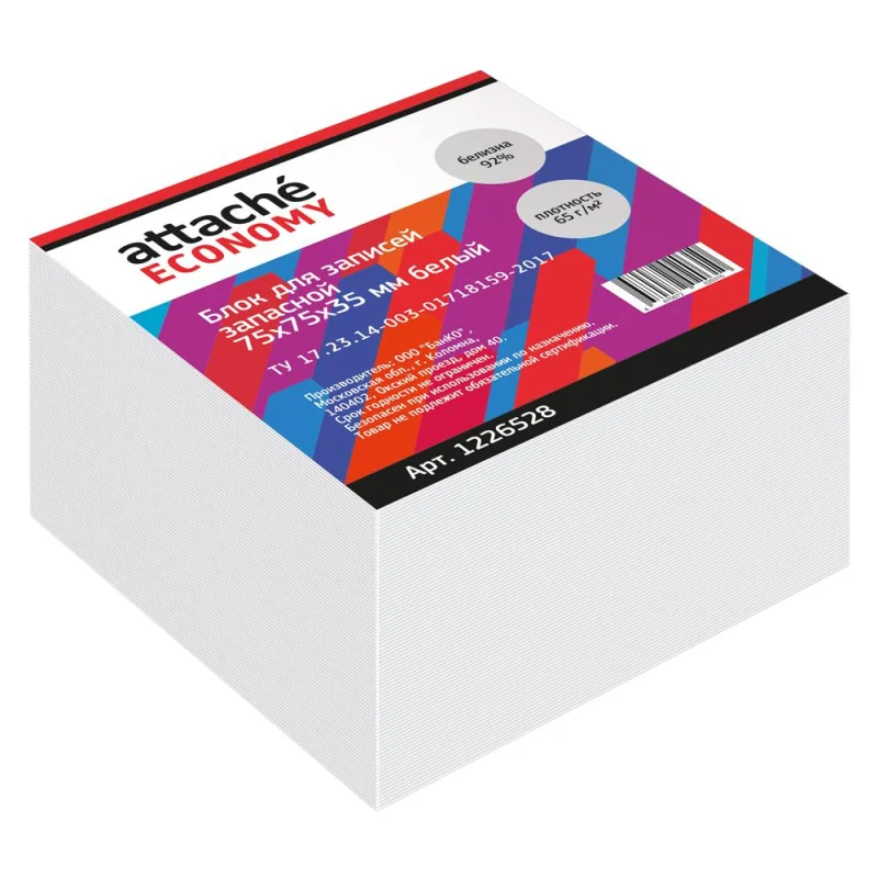 Блок для записей ATTACHE Economy белый запасной 10х10х10см 60 г, 65