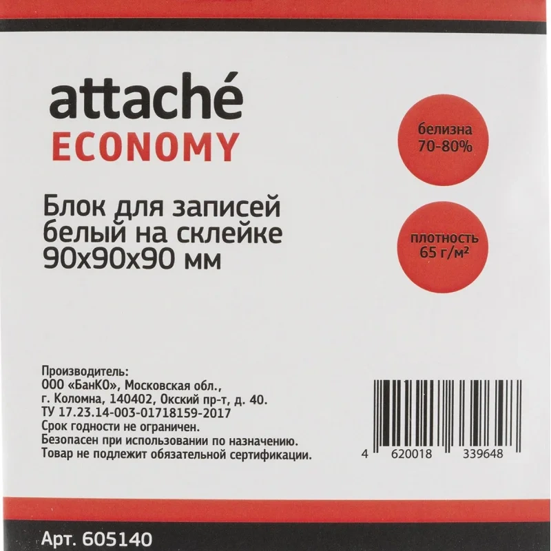 Блок для записей Attache Economy запасной 9х9х5 белый 65 гр 92