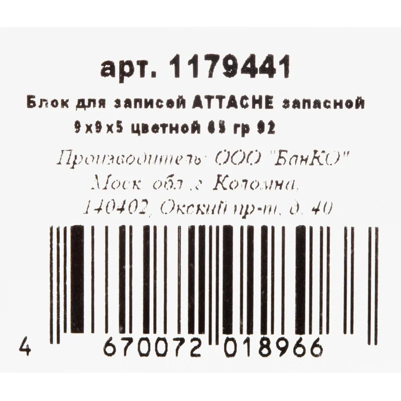 Блок для записей Attache Economy запасной 9х9х5 цветной 65 гр 92