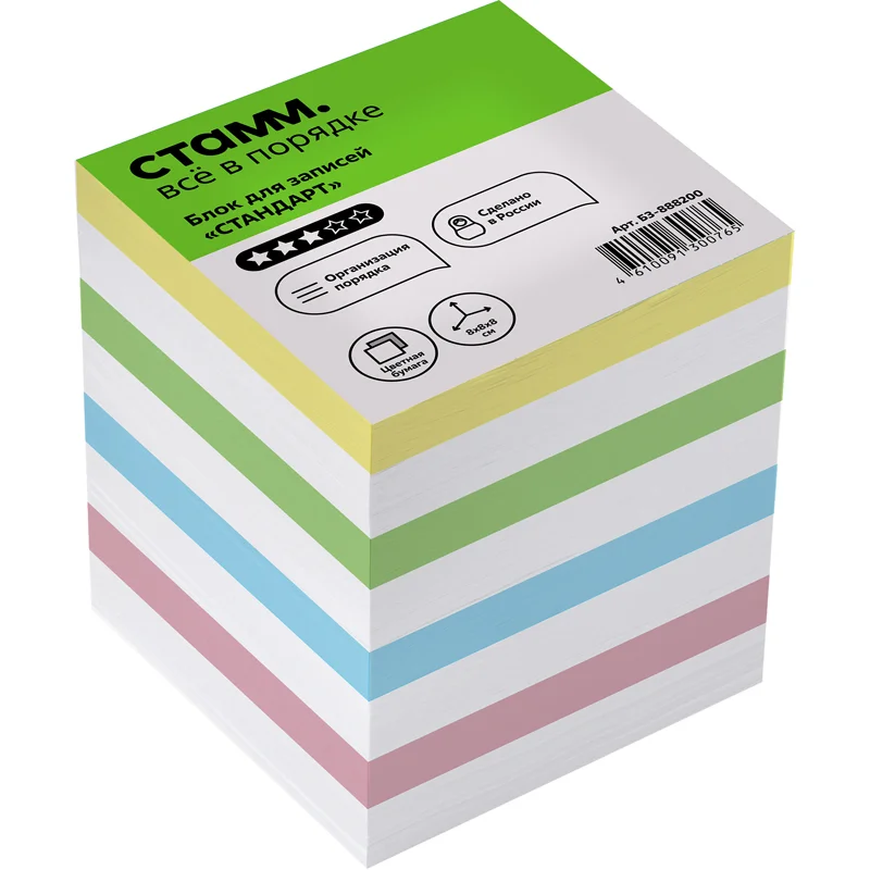 Блок для записей СТАММ 'Стандарт', 8*8*8см, ассорти