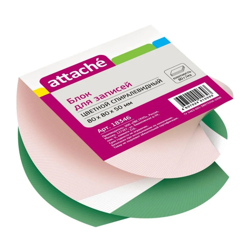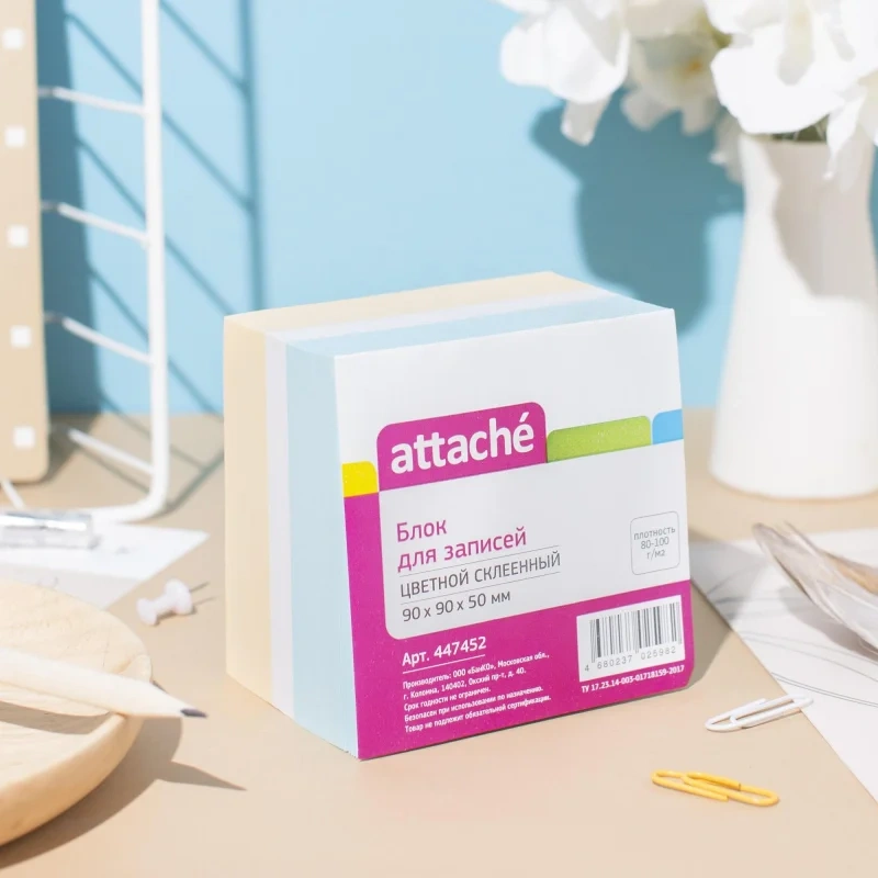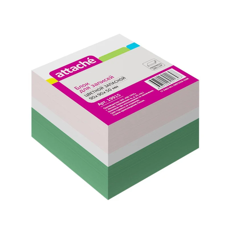 Блок для записей в подставке Attache цветной, 90х90х50мм