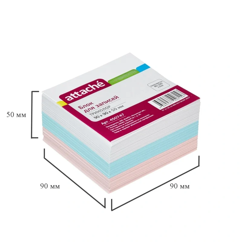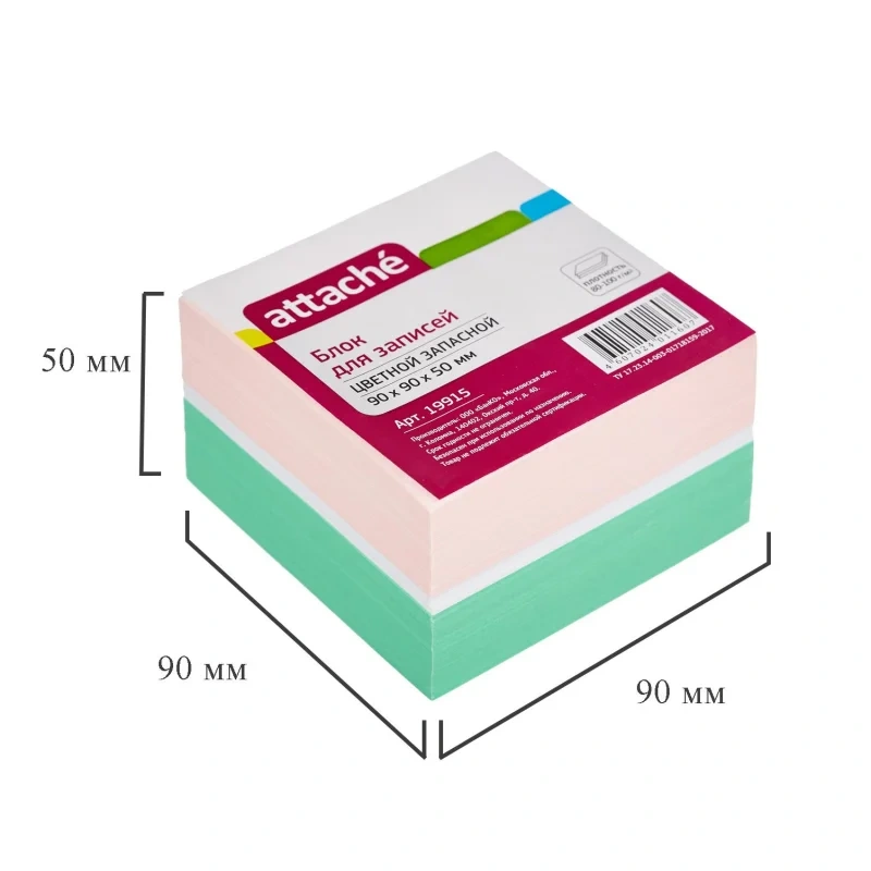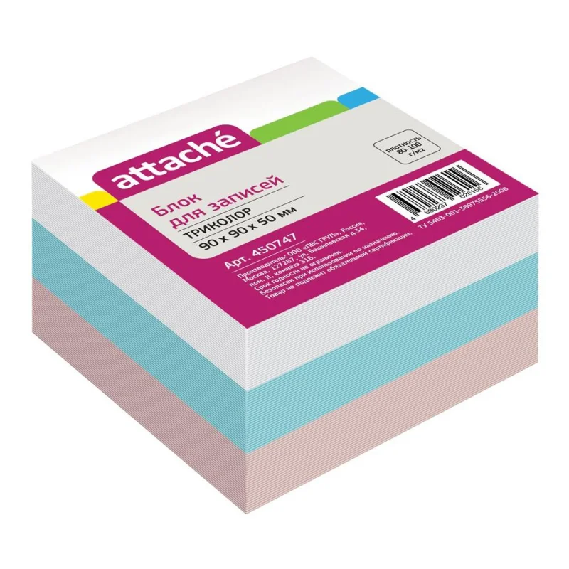 Блок для записей проклеенный Attache 3 цвета, 90х90мм