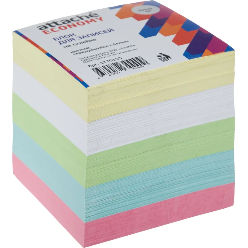 Блок для записей Attache Economy проклеен.куб 9х9х9см цвет. с белым 65-80 г