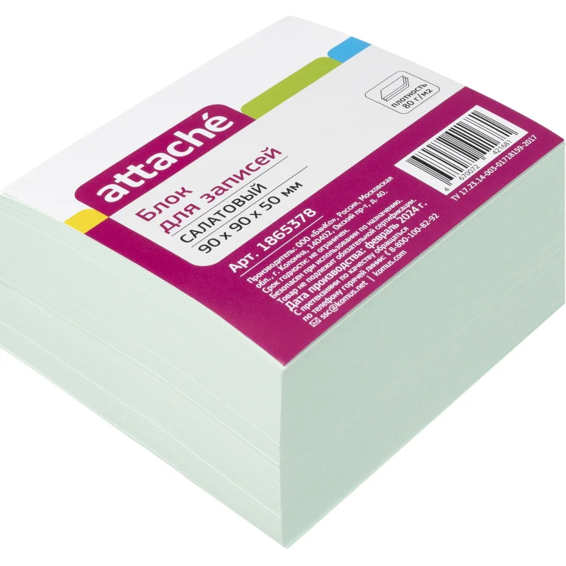 Блок для записей Attache Economy на склейке 8х8х2,9см цвет. с белым 65-80 г