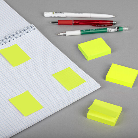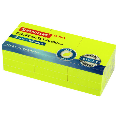 Блоки самоклеящиеся EXTRA STICKY BRAUBERG (Германия), НЕОНОВЫЕ, 40х50 мм, КОМПЛЕКТ 12 шт. по 100 л.,