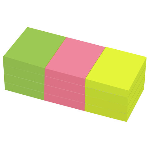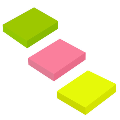 Комплект стикеров 3 неоновых цветов (розовый, зеленый и желтый) повышенной клейкости в форме прямоугольника 40х50 мм включает в себя 12 блоков по 100 листов. Плотность бумаги составляет 75 г/м2. Клейкий слой - 55 Н/м. Легко клеятся к любой поверхности. Не оставляют следов. Упакованы в полиэтиленовую пленку.