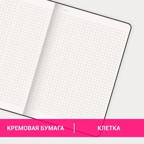 Твердая обложка стилизована под 'классическую кожу'. Имеет закругленные уголки, подходит для горячего тиснения и имеет резинку-фиксатор, благодаря чему не раскроется в сумке или портфеле и листы не помнутся. На внутренней стороне задней обложки есть декоративный конверт для разных мелочей в виде визиток, напоминалок или других милых и полезных мелочей. 96 листов позволят зафиксировать большой объем информации. Линовка блока в клетку (5х5 мм) дает возможность аккуратно заполнить цифровые значения, а также нанести чертежные зарисовки. Внутренний блок выполнен из офсета цвета слоновой кости плотностью 80 г/м2 и крепится к обложке с помощью книжного переплета. Дополнением является закладка-ляссе, с помощью которой при необходимости можно быстро открыть нужную страницу. Формат блокнота А5 (130х210 мм) позволит владельцу поместить его в кейс или сумку малых габаритов.