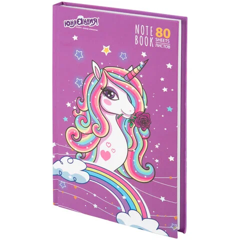 Записная книжка Юнландия Единорог, А5, 80 листов, в клетку, на сшивке