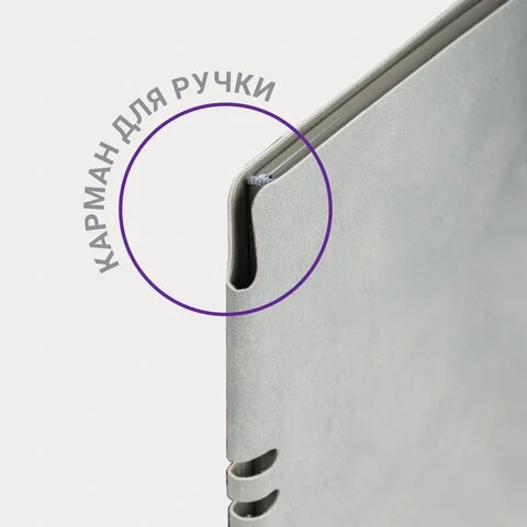 Для удобства пользования блокнот снабжен карманом для фиксации ручки. Дополнением являются 2 закладки-ляссе, с помощью которых можно быстро открыть нужные страницы. Формат блокнота А5 (140х200 мм) позволит владельцу поместить его в кейс или сумку малых габаритов.