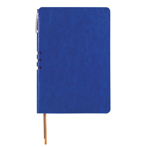 Блокнот А5 (140x200 мм), BRAUBERG 'NEBRASKA', 112 л., гибкий кожзам, ручка, линия, синий, 110948
