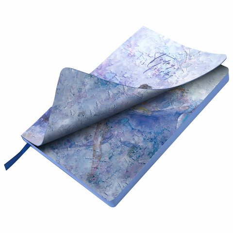 Внутренний блок включает 80 листов белой бумаги плотностью 70 г/м2. Благодаря стандартному формату А5 блокнот удобно использовать как в офисе, так и на выездных деловых встречах. Интегральная (мягкая) обложка с полноцветной печатью делает блокнот неповторимым и запоминающимся. Срез блокнота прокрашен, что придает ему особый шарм. Дополнением является закладка-ляссе, с помощью которой можно быстро открыть блокнот на нужной странице.