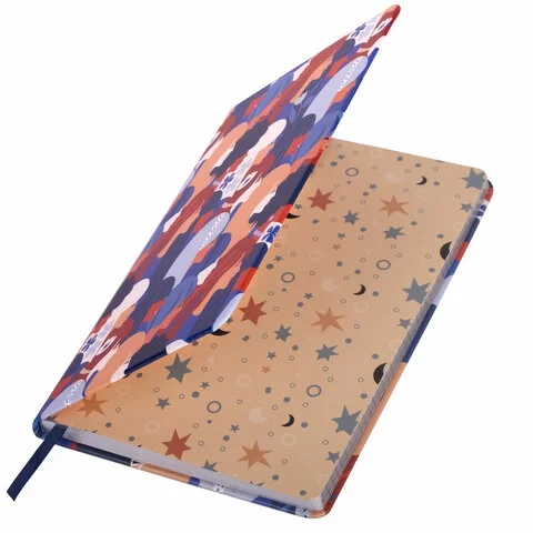 Внутренний блок включает 80 листов тонированной бумаги цвета 'слоновая кость' плотностью 70 г/м2. Благодаря стандартному формату А5 блокнот удобно использовать как в офисе, так и на выездных деловых встречах. Твердая (книжная) обложка с полноцветной печатью делает блокнот неповторимым и запоминающимся. Срез блокнота фольгирован серебряной фольгой, что придает ему особый шарм. Дополнением является закладка-ляссе, с помощью которой можно быстро открыть блокнот на нужной странице.