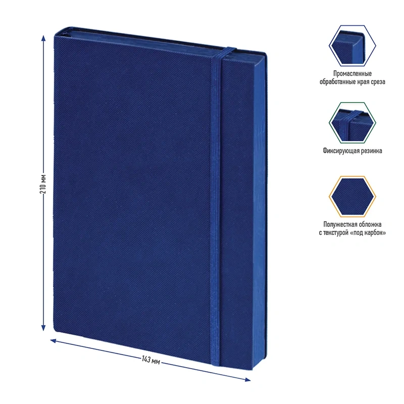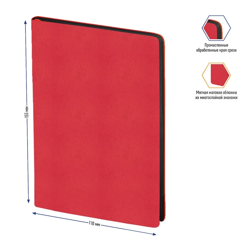 Внутренний блок включает 80 листов тонированной бумаги цвета 'слоновая кость' плотностью 70 г/м2. Благодаря стандартному формату А5 блокнот удобно использовать как в офисе, так и на выездных деловых встречах. Интегральная (мягкая) обложка с полноцветной печатью делает блокнот неповторимым и запоминающимся. Срез блокнота прокрашен, что придает ему особый шарм. Дополнением является закладка-ляссе, с помощью которой можно быстро открыть блокнот на нужной странице.