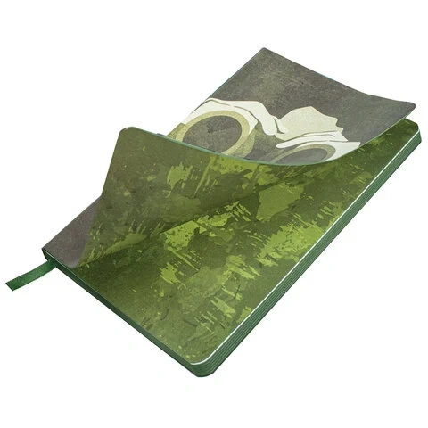 Внутренний блок включает 80 листов белой бумаги плотностью 70 г/м2. Благодаря стандартному формату А5 блокнот удобно использовать как в офисе, так и на выездных деловых встречах. Интегральная (мягкая) обложка с полноцветной печатью делает блокнот неповторимым и запоминающимся. Срез блокнота прокрашен, что придает ему особый шарм. Дополнением является закладка-ляссе, с помощью которой можно быстро открыть блокнот на нужной странице.