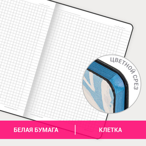 Внутренний блок включает 80 листов белой бумаги плотностью 70 г/м2. Благодаря стандартному формату А5 блокнот удобно использовать как в офисе, так и на выездных деловых встречах. Интегральная (мягкая) обложка с полноцветной печатью делает блокнот неповторимым и запоминающимся. Срез блокнота прокрашен, что придает ему особый шарм. Дополнением является закладка-ляссе, с помощью которой можно быстро открыть блокнот на нужной странице.