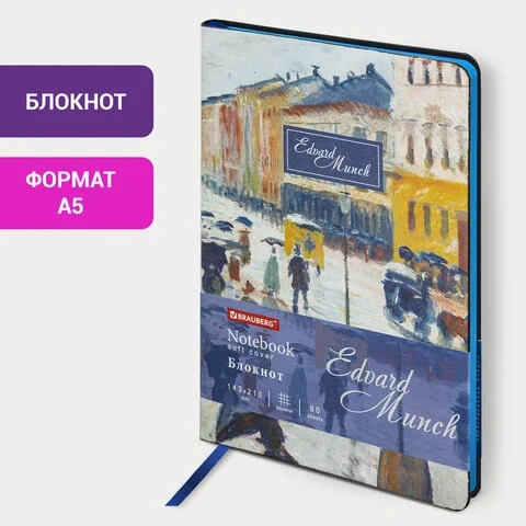 Записная книжка Brauberg Vista Edvard Munch, А5, 80 листов, в клетку, на сшивке, под кожу