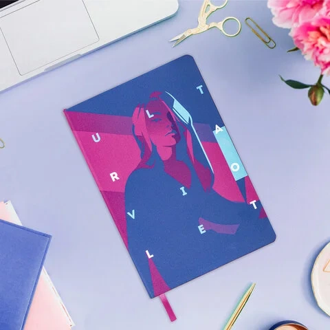 Внутренний блок включает 80 листов белой бумаги плотностью 70 г/м2. Благодаря стандартному формату А5 блокнот удобно использовать как в офисе, так и на выездных деловых встречах. Интегральная (мягкая) обложка с полноцветной печатью делает блокнот неповторимым и запоминающимся. Срез блокнота прокрашен, что придает ему особый шарм. Дополнением является закладка-ляссе, с помощью которой можно быстро открыть блокнот на нужной странице.