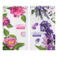 Блокнот А5 (145х205 мм), 60 л., гребень, обложка пластик, жесткая подложка, линия, HATBER, 'Flowers'