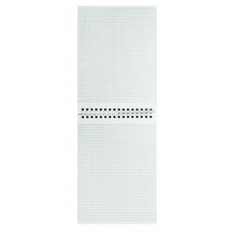 Блокнот формата А5 на евроспирали содержит 60 листов с линовкой в клетку, что позволяет зафиксировать большой объем нужной информации и дает возможность аккуратно заполнить цифровые значения, а также нанести чертежные зарисовки. Гребень расположен сверху. Обложка выполнена из мелованного картона плотностью 190 г/м2. Внутренний блок состоит из белой офсетной бумаги плотностью 60 г/м2.