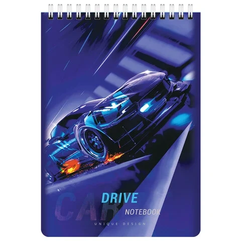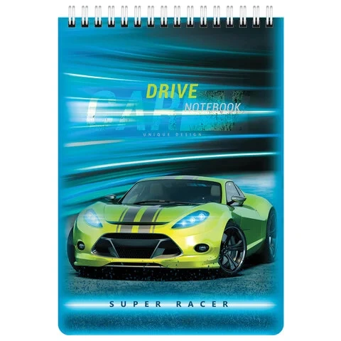 Блокнот А5 (146х206 мм), 60 л., гребень, картон, клетка, BRAUBERG KIDS, 'Racing', 114363