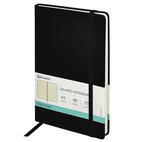 Записная книжка Brauberg Metropolis Special черный, А5, 80 листов, в клетку, на сшивке, под кожу