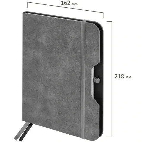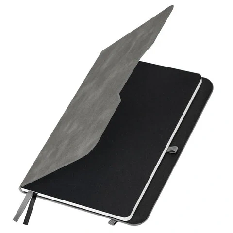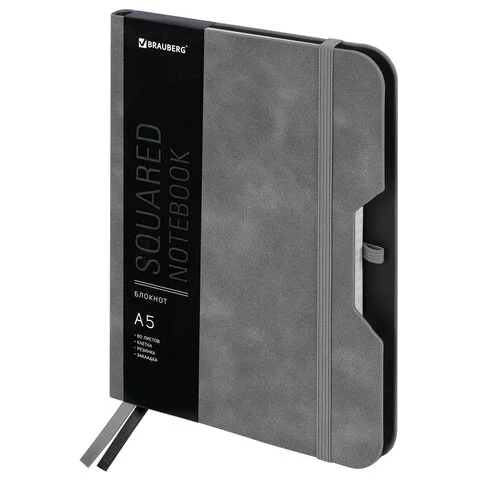 Записная книжка Brauberg Note серый, А5, 80 листов, в клетку, на сшивке, под кожу софт-тач