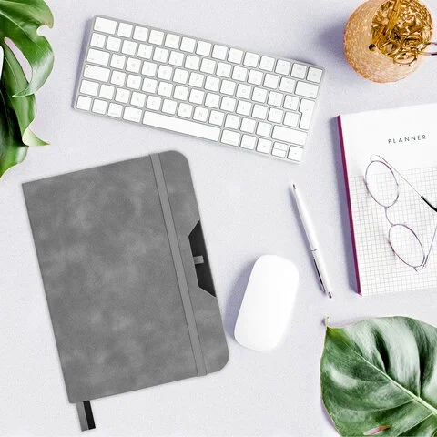 Твердая обложка стилизована под 'гладкую кожу'. Специальное покрытие с повышенными тактильными свойствами придает обложке мягкий, бархатистый эффект. Имеет закругленные уголки, подходит для горячего тиснения и имеет резинку-фиксатор, благодаря чему не раскроется в сумке или портфеле и листы не помнутся. 80 листов позволят зафиксировать большой объем информации. Линовка блока в клетку (5х5 мм) дает возможность аккуратно заполнить цифровые значения, а также нанести чертежные зарисовки. Внутренний блок выполнен из офсета цвета слоновой кости плотностью 70 г/м2 и крепится к обложке с помощью книжного переплета. Дополнением являются две закладки-ляссе, с помощью которых при необходимости можно быстро открыть или зафиксировать нужную страницу, а также держатель для ручки. Формат блокнота А5 (162х218 мм) позволит владельцу поместить его в кейс или сумку малых габаритов.