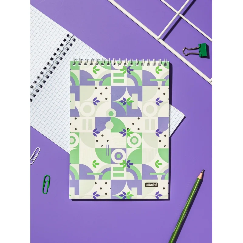 Дизайн блокнота Attache Яркий паттерн выполнен в зеленом цвете. Данный блокнот станет идеальным выбором для учебы, офисных будней или же просто как личный ежедневник.