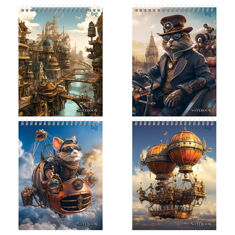 Блокнот Bg Стимпанк, А5, 40 листов, в клетку, на спирали