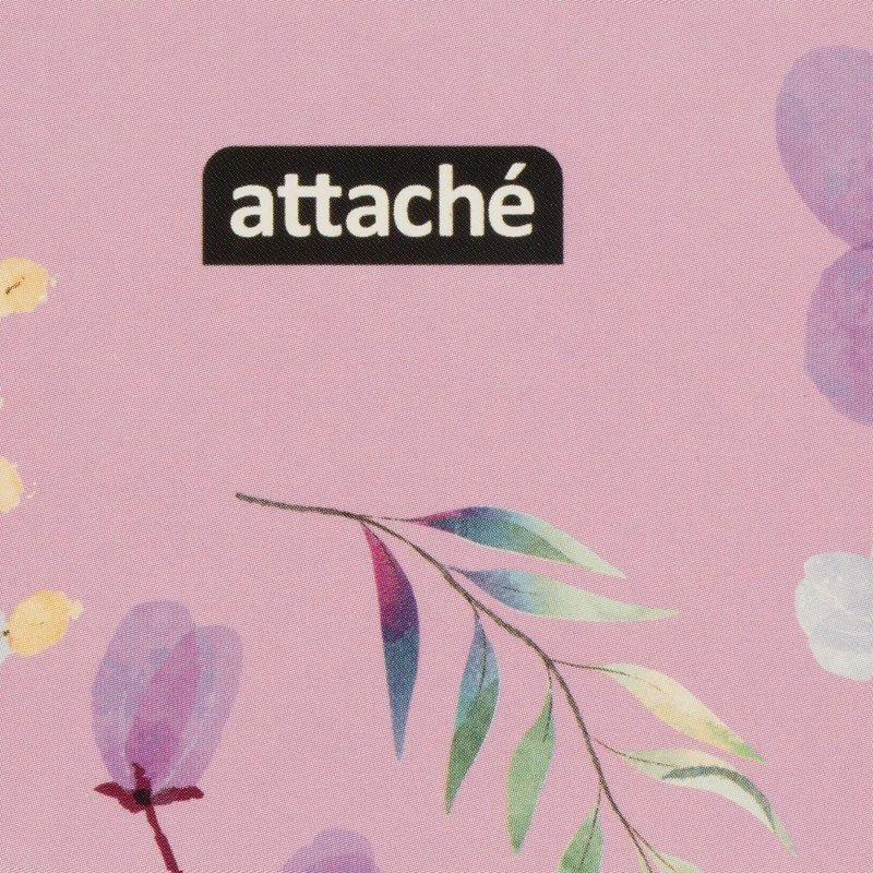 Блокнот Attache Цветы — блокнот формата А5 для ведения записей. Состоит из мягкой картонной обложки в красочном стиле и 60 листов офсетной бумаги. Листовая бумага у данного блокнота имеет белый цвет. Она разлинована «в клетку». Плотность блока равна 60 граммам/квадратный метр. Листы надежно крепятся с обложкой с помощью спирали, крепление располагается сверху. Блокнот не имеет перфорации и разделителей, а также фиксирующей резинки, отверстия для прошивки и полей для подписи на обложке. Общий габариты блокнота составляют 146×204 миллиметров.