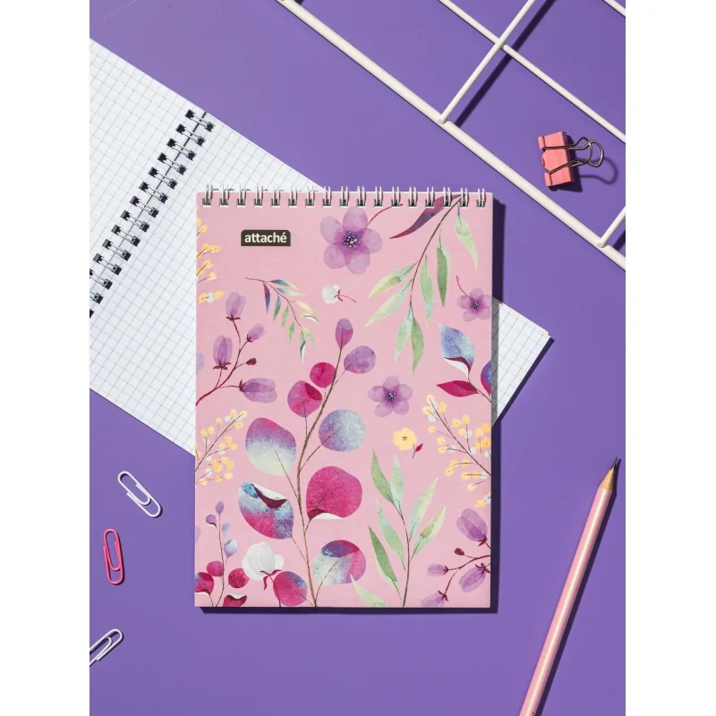 Дизайн блокнота Attache Цветы выполнен в розовом цвете с изображением нежных цветов. Данный блокнот станет идеальным выбором для учебы, офисных будней или же просто как личный ежедневник.