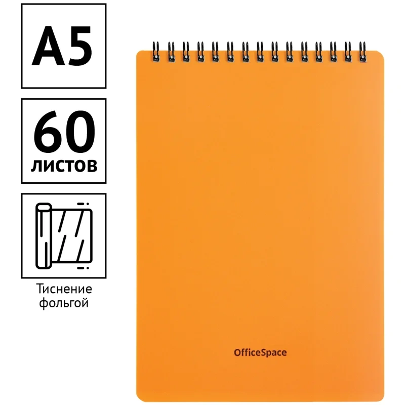 Блокнот А5 60л. на гребне OfficeSpace 'Neon', оранжевая пластиковая обложка
