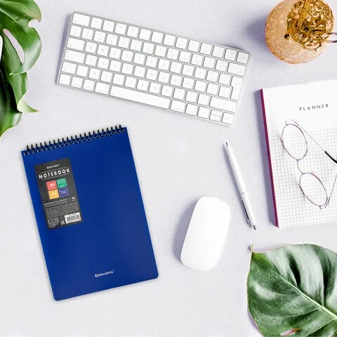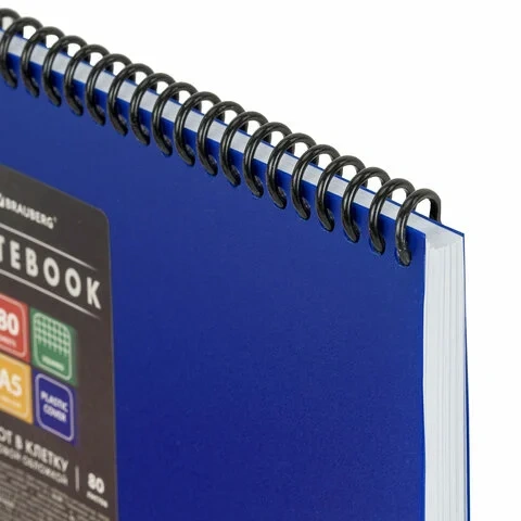 Блокнот А5 80 л., спираль пластиковая, обложка пластик, клетка, BRAUBERG 'Metropolis', СИНИЙ, 115569