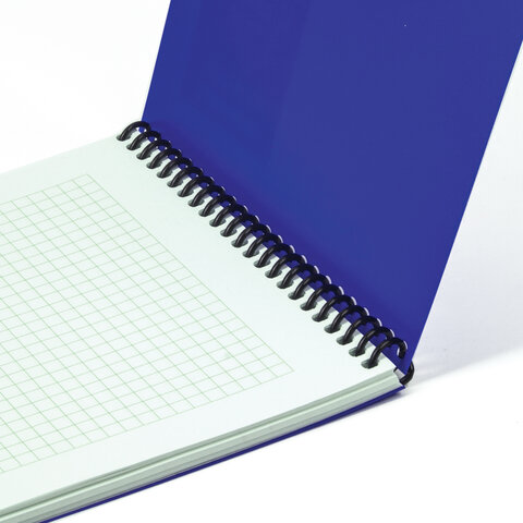 Блокнот формата А5 на евроспирали содержит 80 листов с линовкой в клетку, что позволяет зафиксировать большой объем нужной информации. Имеет верхнее расположение переплета. Обложка выполнена из пластика, что делает блокнот более износоустойчивым. Внутренний блок состоит из белой офсетной бумаги плотностью 60 г/м2.