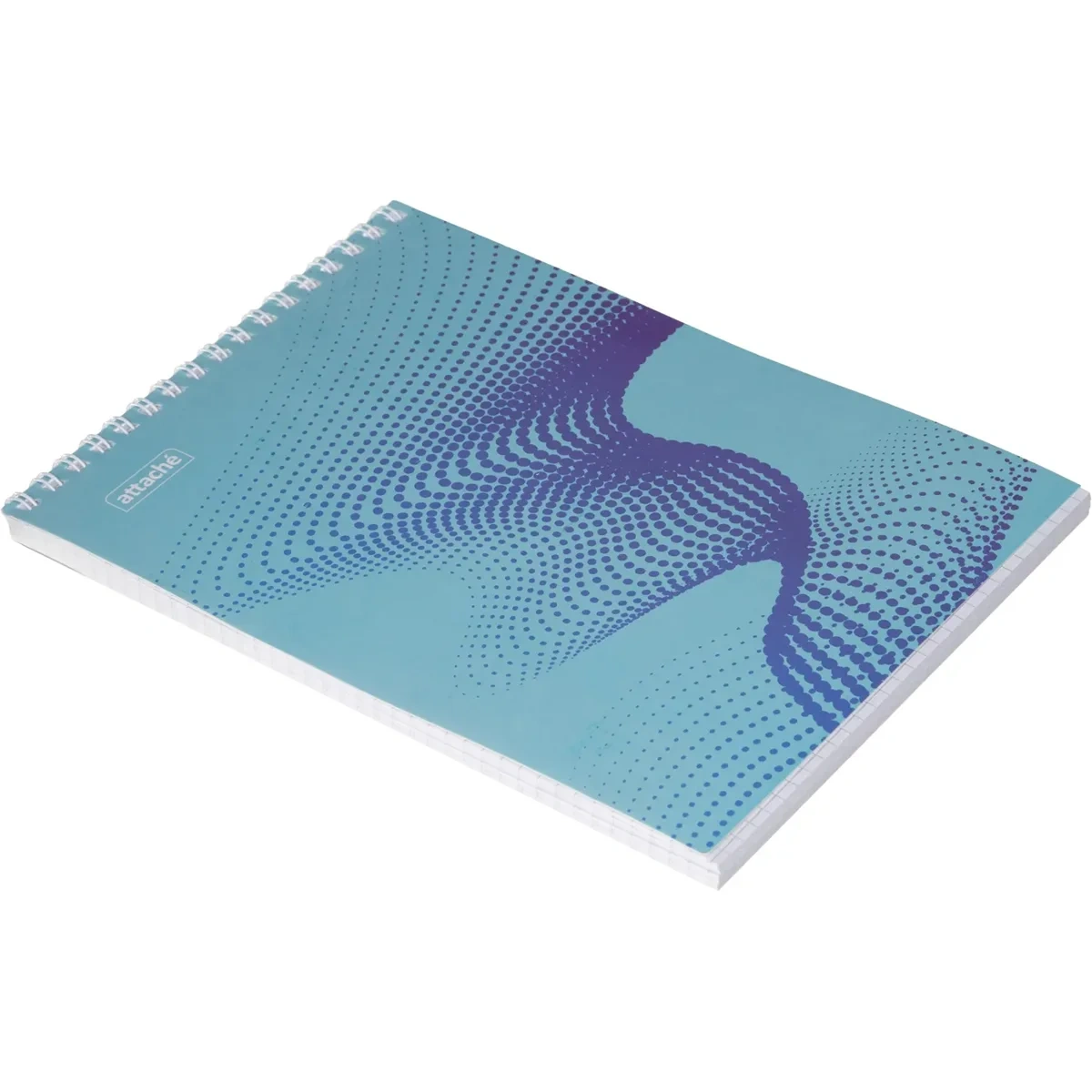 Блокнот Attache Forma формата А5 подходит для использования студентами и в офисе. Содержит 80 листов офсетной бумаги 60 г/кв.м. Обложка — изготовлена из картона 190 г/кв.м. с яркой цветной печатью в синих тонах. Подложка изготовлена из плотного немелованного картона 400 г/кв.м. Блокнот скреплен металлической спиралью сверху. Формат блокнота 146×204 мм.